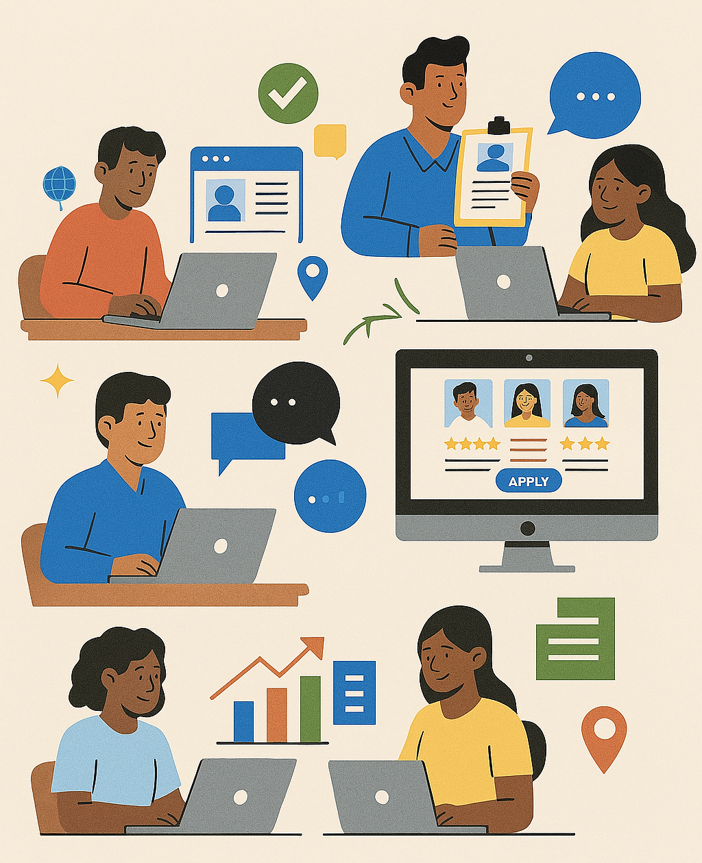 We provide online and offline assistance, advisory, and administrative support services to individuals and businesses, including but not limited to job search support, employment guidance, and facilitation of communication between employers and job seekers.